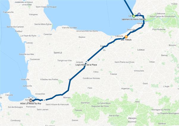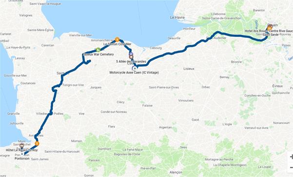 After breakfast we left Mont St Michel heading for Rouen with a plan to meet Brian and Simon at Gold Beach around lunch time.