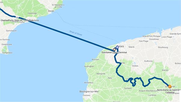 The short journey to the Eurotunnel port was a leisurely ride through some forestry park land arriving in good time for our train to Folkestone.